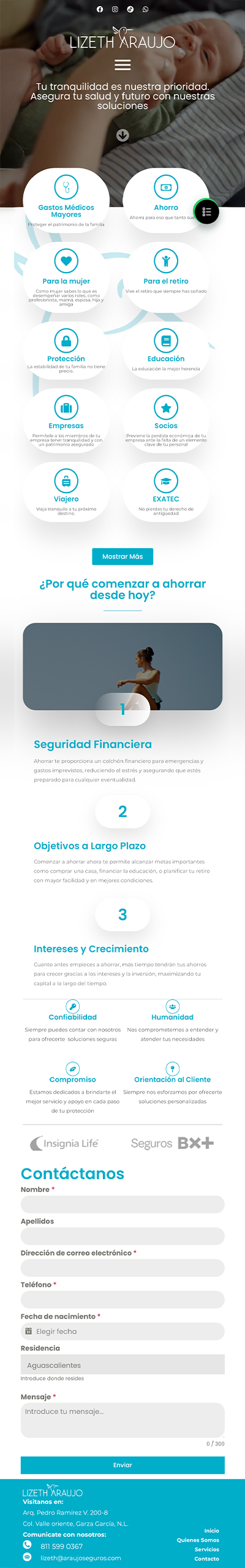 El diseño combina una estética limpia y moderna con elementos que reflejan credibilidad, empatía y trayectoria. Se optimizó la navegación y la presentación visual de la información para facilitar la interacción con potenciales clientes y fortalecer su presencia digital como asesora líder en Monterrey.
