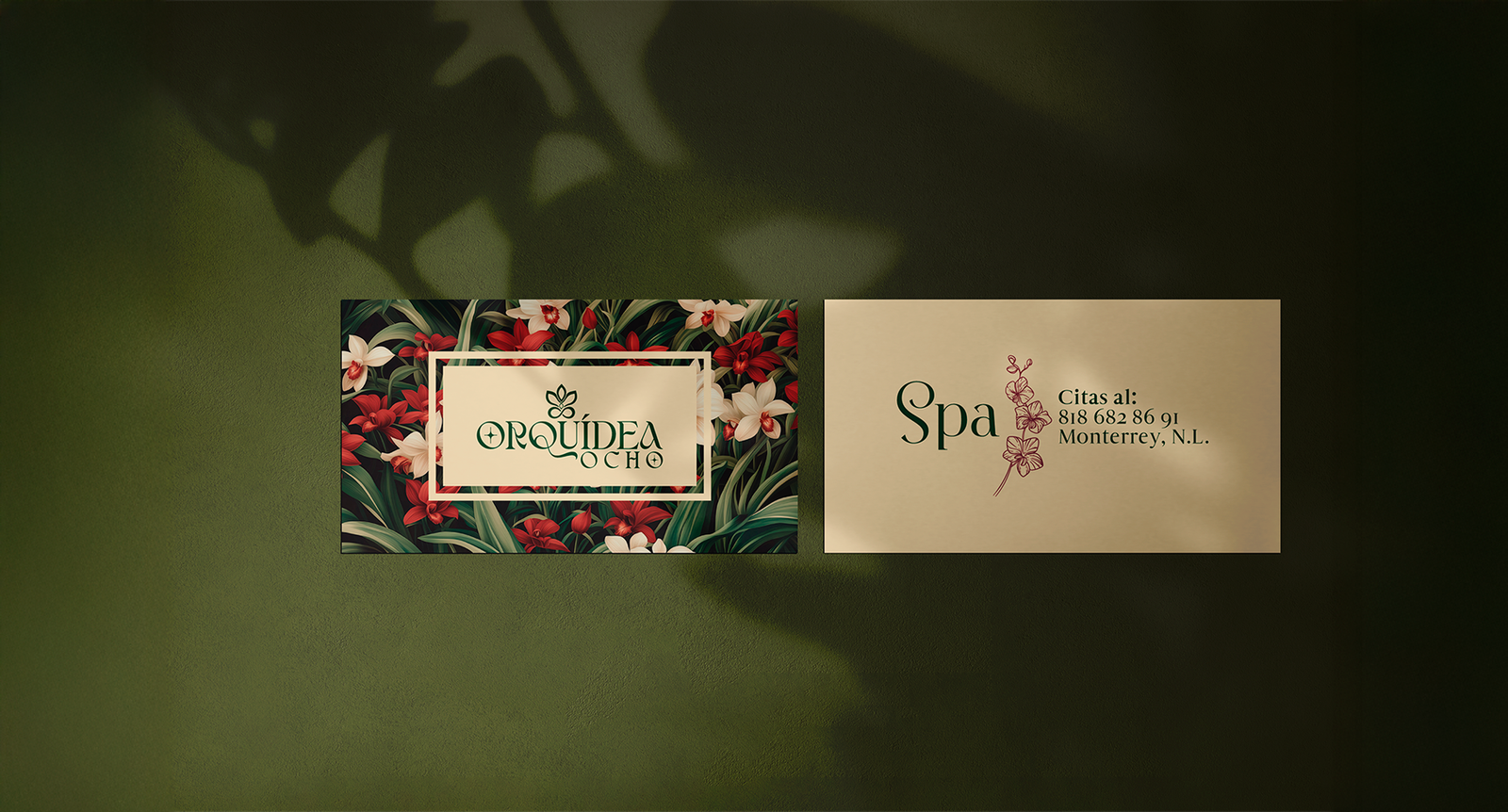 El diseño de marca se centró en crear una atmósfera suave y delicada a través de elementos gráficos minimalistas, una paleta cromática equilibrada y una tipografía que comunica refinamiento y calidez. Cada decisión visual fue estratégica para posicionar a Orquídea Ocho como un spa especializado en experiencias de autocuidado y relajación profunda.